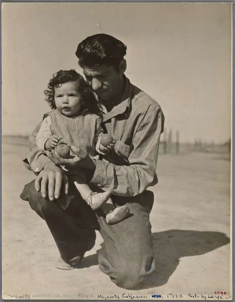 In the early 1930s, Lange turned her lens from the polished elite to the dust-stained laborers and displaced families who flooded into California. Working with the Farm Security Administration, she traveled the state’s fields and towns, capturing the lives of migrant farmworkers.